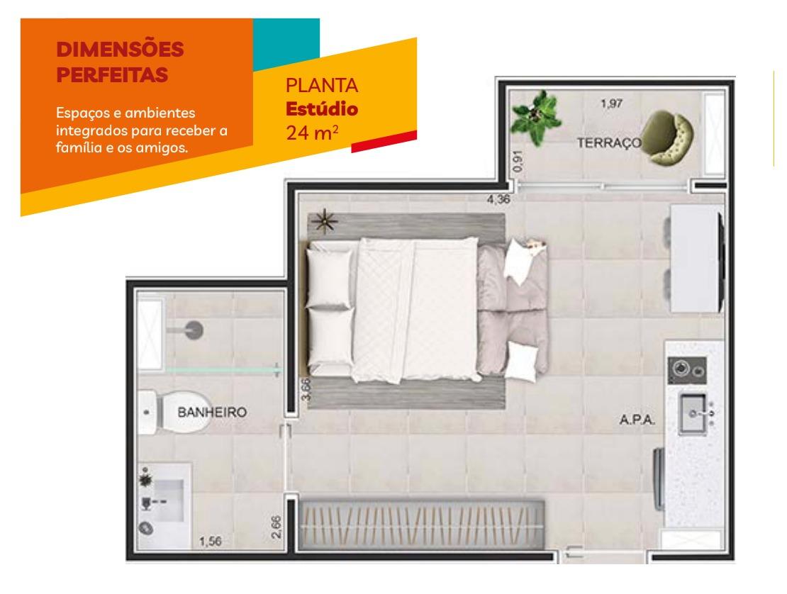 Opções de studios e apartamentos com 2 dormitórios, perfeitos para quem busca seu primeiro imóvel ou investir com segurança.