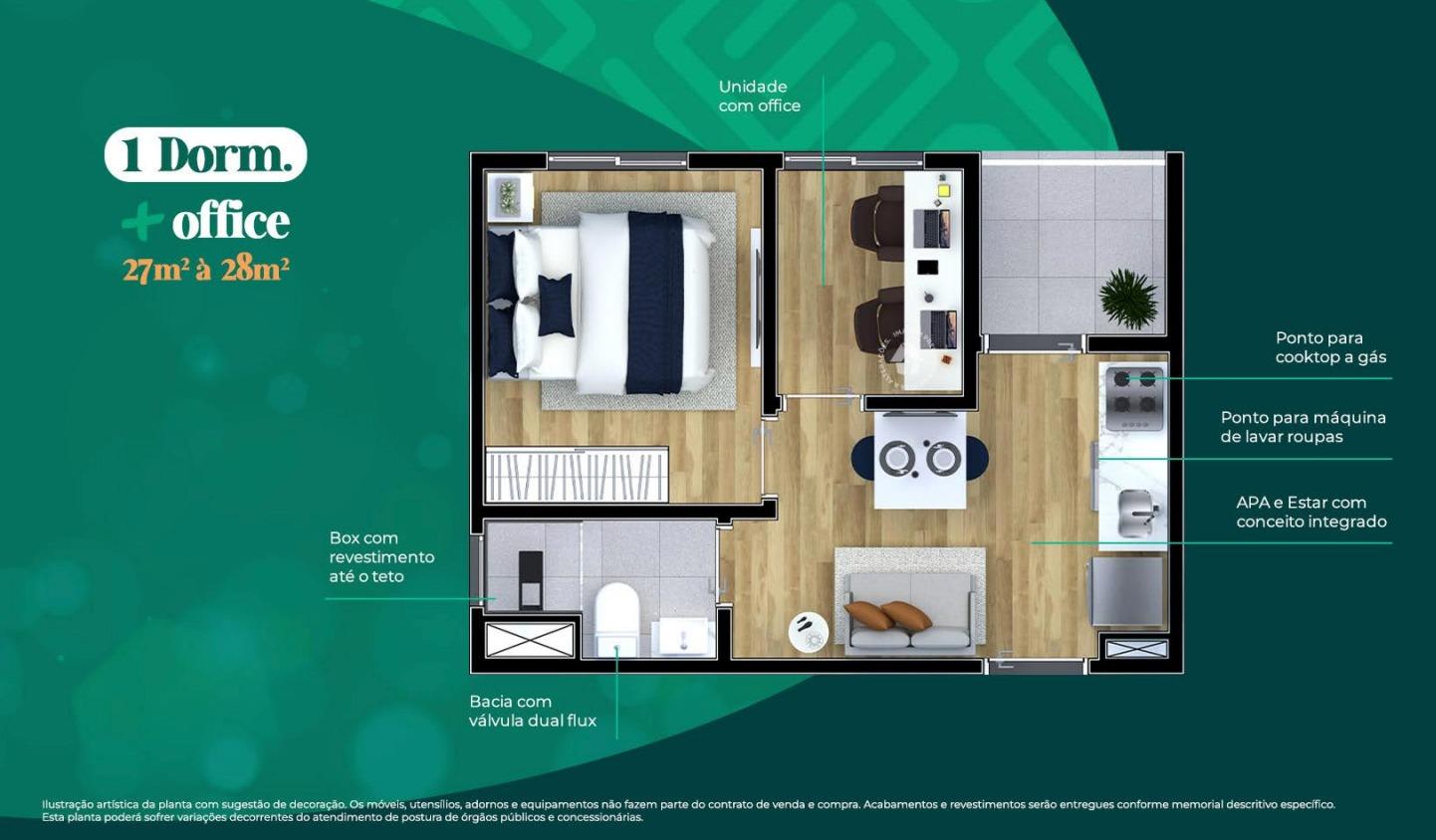 ? Seu apê com 1 dorm + office na Cidade Ademar!